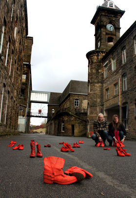 Presence of an Absence was a group exhibition at Brierfield Library, 28th February - 30th March 2015, and included a live art event at Brierfield (Northlight) Mill. Produced by Georgianna C Ainsworth, who was then an MA student at UCLAN, the event at the mill featured Red Shoes, the large-scale, travelling installation work by Mexican artist Elina Chauvet, that brought audience attention to prevalent, international crimes of violence against women. Each pair of shoes in the installation represents a woman murdered, or disappeared, in Mexico. Artists also included in the group exhibition were Brian Maguire, Mark McLoghlin and Rocio Sifuentes.
